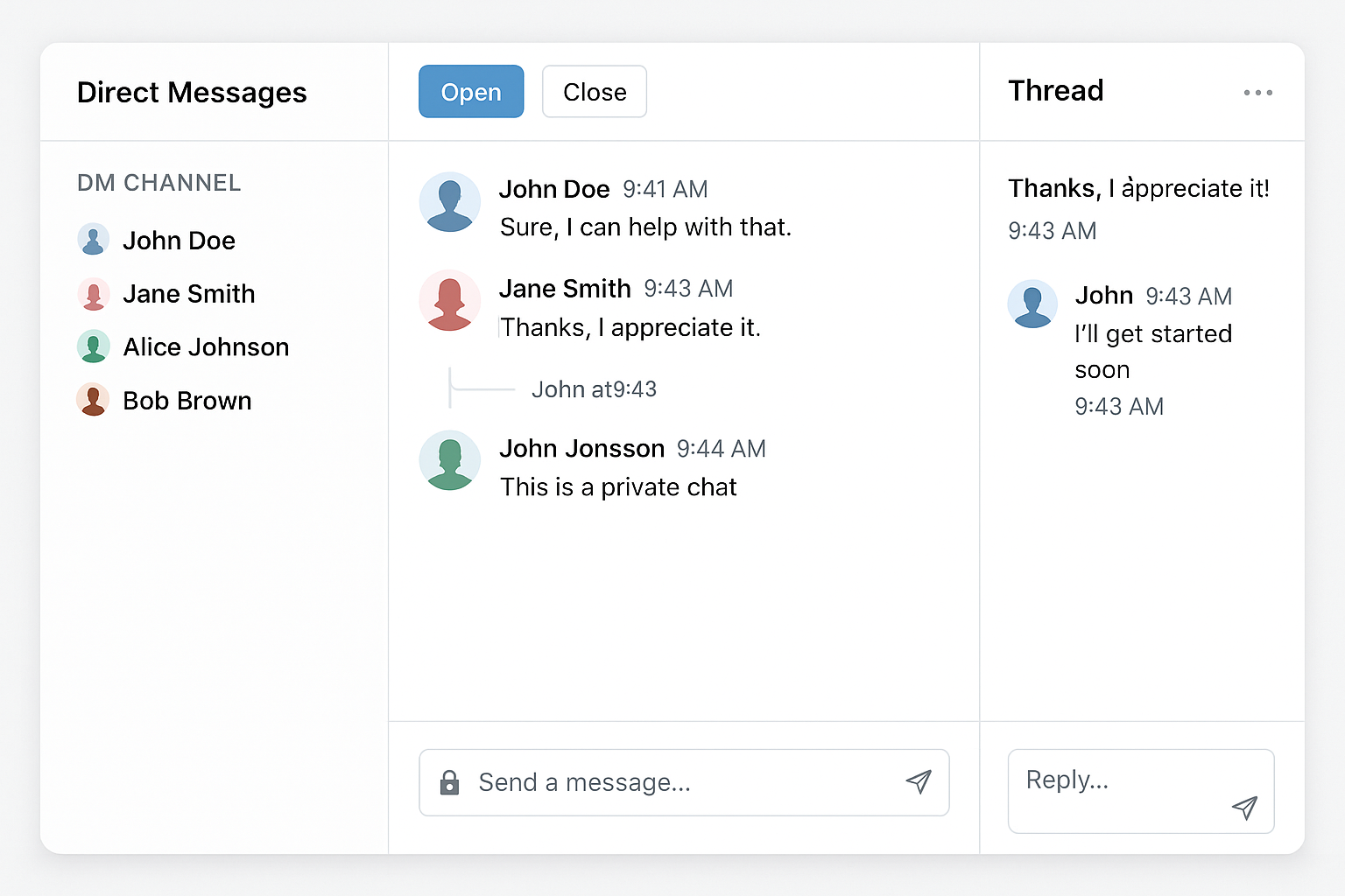 The ability to open and close direct message channels provides you with granular control over your communication flow. This is crucial for managing customer inquiries, project-specific discussions, or even one-on-one team chats. For instance, you can open a channel for a new client onboarding process and close it once the process is complete, ensuring focus and reducing clutter. This feature helps maintain an organized communication environment, allowing you to initiate conversations when needed and archive them when they've served their purpose, streamlining your operational efficiency.